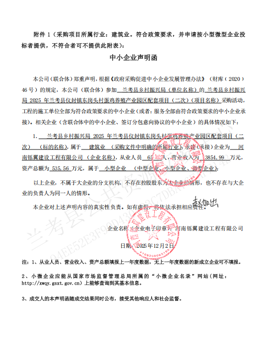 | 2、采购项目名称:兰考县乡村振兴局2025年兰考县仪封镇东岗头村蛋鸡养殖产业园区配套项目 | |||||||||||||||||||||||||||||||