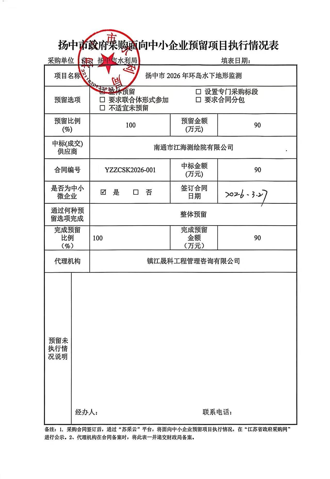二、合同名称:扬中市2026年环岛水下地形监测分析采购合同