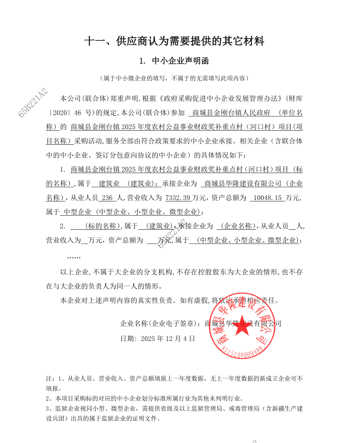 | ******人民政府商城县金刚台镇2025年度农村公益事业财政奖补重点村(河口村)项目 | |||||||||||||||||||||||||||||||