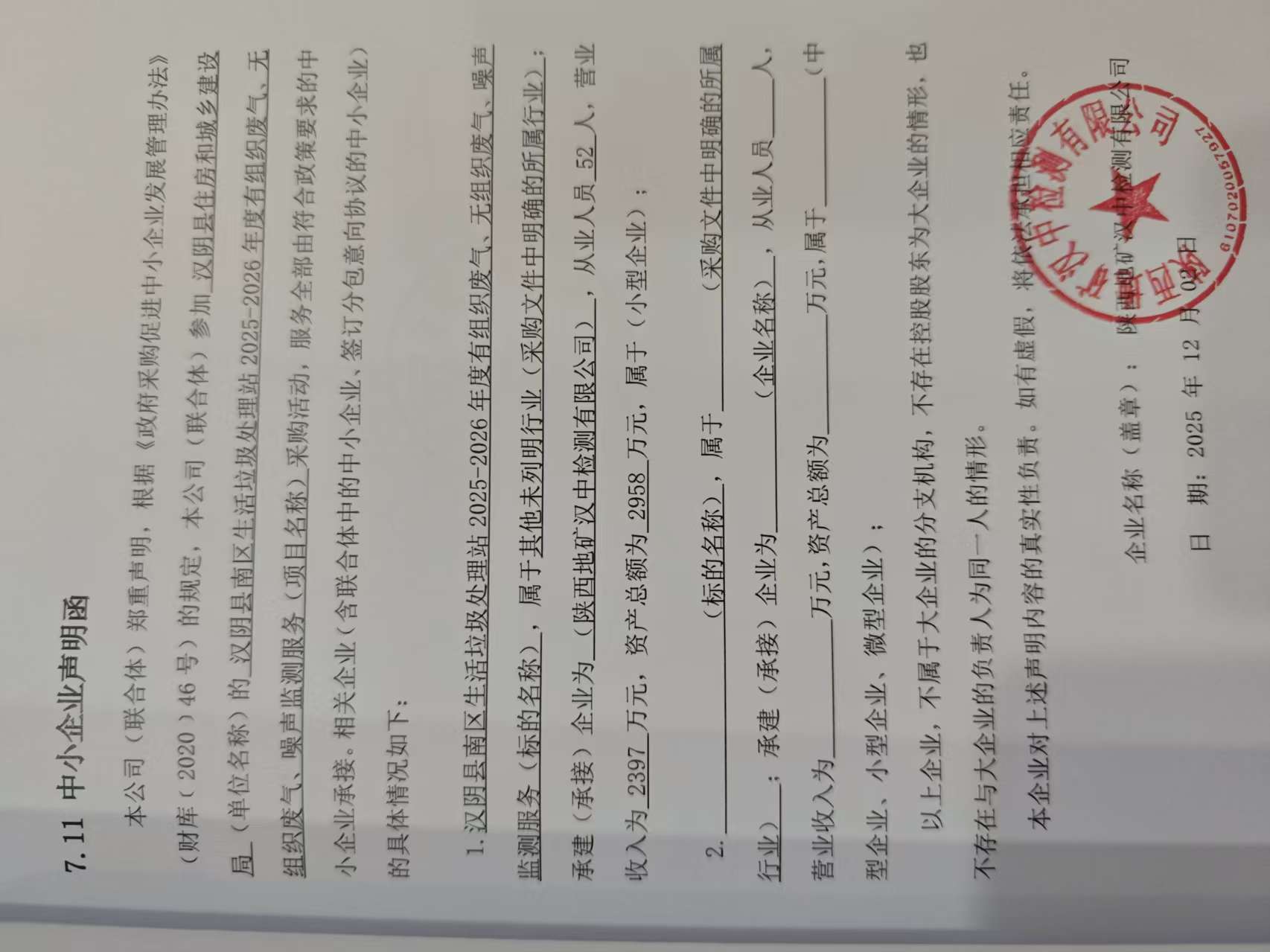 ******建设局汉阴县南区生活垃圾处理站2025-2026年度有组织废气、无组织废气、噪声监测服务中标(成交)明细.pdf 026-磋商文件 -澄清.pdf 中小企业声明函.jpg