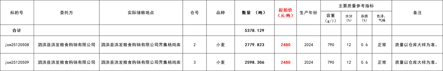 数量:5378.129吨,分2个标段,(详见交易清单)。