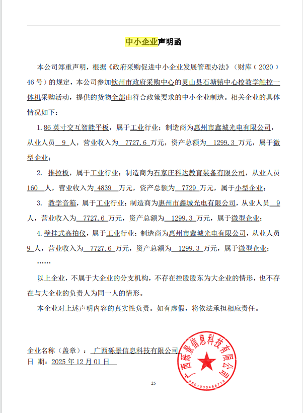 | 3 | 灵山县石塘镇中心校教学触控一体机 | 教学音箱 | 鑫城 | XCYX030 | 23台 | 600 |