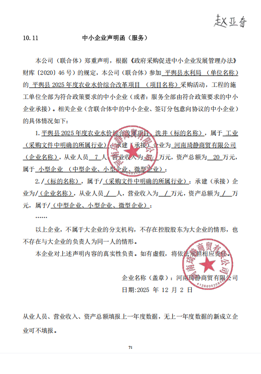 | 2、采购项目名称:平舆县2025年度农业水价综合改革项目 | |||||||||||||||||||||||||||||||
