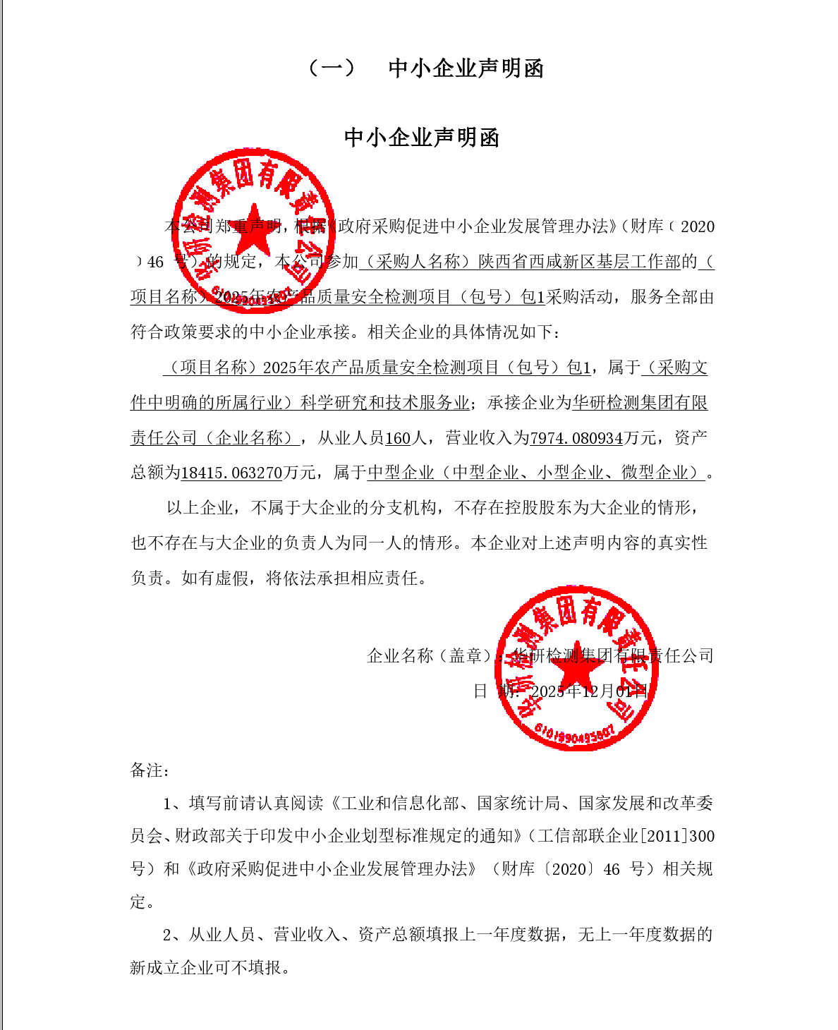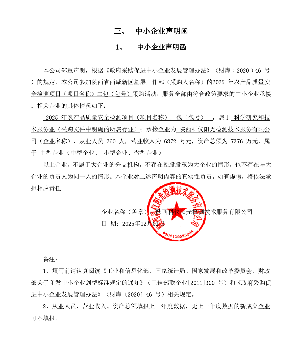 陕西省西咸新区基层工作部2025年农产品质量安全检测项目中标(成交)明细.pdf 【定稿】2025年农产品质量安全检测项目.pdf 中小企业声明函二包.png 中小企业声明函一包.png