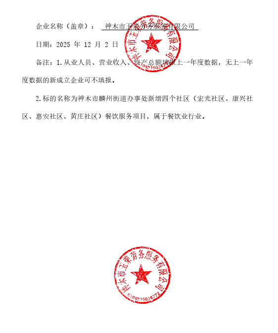 | 1 | 新增四个社区(宏光社区、康兴社区、惠安社区、黄庄社区)餐饮服务项目 | 0 | 无 |