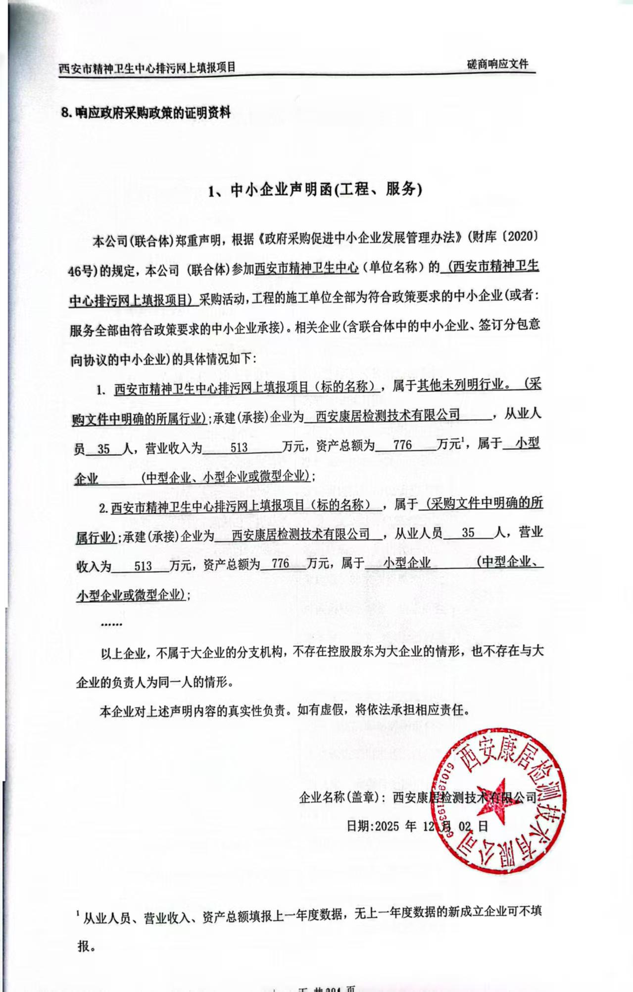 西安市精神卫生中心排污网上填报中标(成交)明细.pdf 竞争性磋商文件.pdf 中小企业申明函.jpg