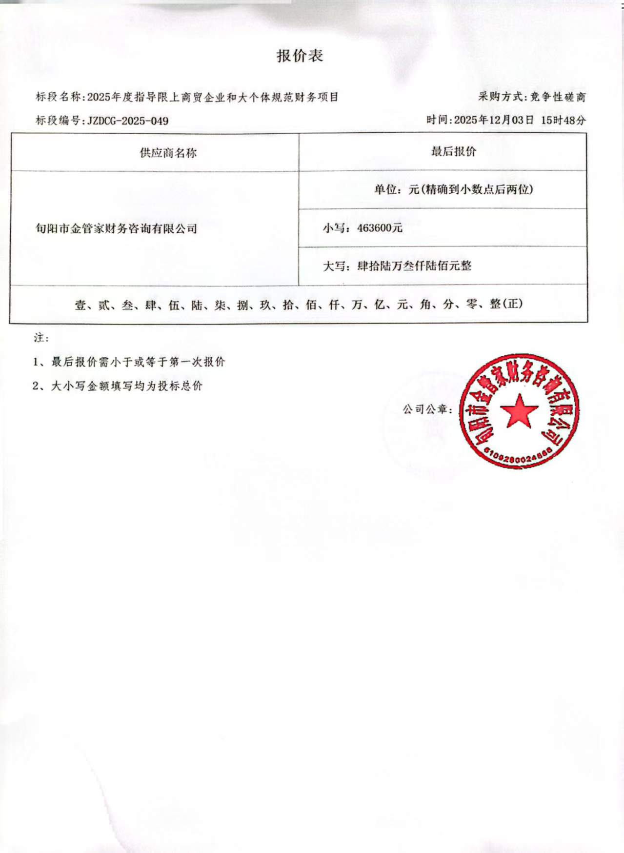 石泉县经济贸易和科学技术局2025年度指导限上商贸企业和大个体规范财务项目中标(成交)明细.pdf 2025年度指导限上商贸企业和大个体规范财务项目竞争性磋商文件.pdf 中小企业声明函.pdf 最终报价表.jpg